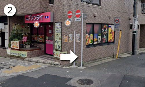 ■スーパーマーケットリコリスを通過して、右手に見えるビル建設中の工事現場の角を曲がり20メートルほど歩くと左手に見えてきます。