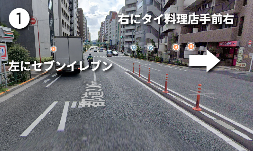 ■池袋東口を出ましたら、明治通りを南に歩いていただきます。